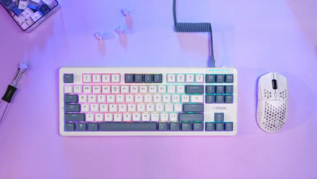 Gasket-rakenne, vaihdettavat kytkimet ja RGB-valaistus.