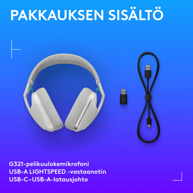 Noin 70 euroa maksava Logitech G321 on valmistettu 28-prosenttisesti kuluttajakäytön jälkeen kierrätetyistä materiaaleista. Pakkaukset on tehty FSC-sertifioidusta paperista. Kuulokkeet on saatavilla mustana ja valkoisena.