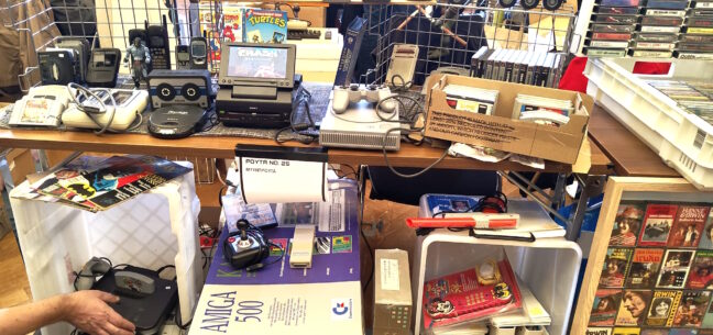Näytepöytien lisäksi huoneen keskellä oli ns. kaupparivistöt, joissa moni taho tarjosi mahdollisuuden napata palan lapsuuttaan mukaan kohtuulliseen hintaan. PlayStation-klassikot, He-Man-figuurit, Disney-VHS-kasetit ja lautapelit olivat prameasti esillä pöydillä. Näiden lisäksi monet museot, kuten Parkanon Radiomuseo ja Suomen VHS-museo, täydensivät rivejä kauppaamalla aarteitaan innokkaille harrastajille.