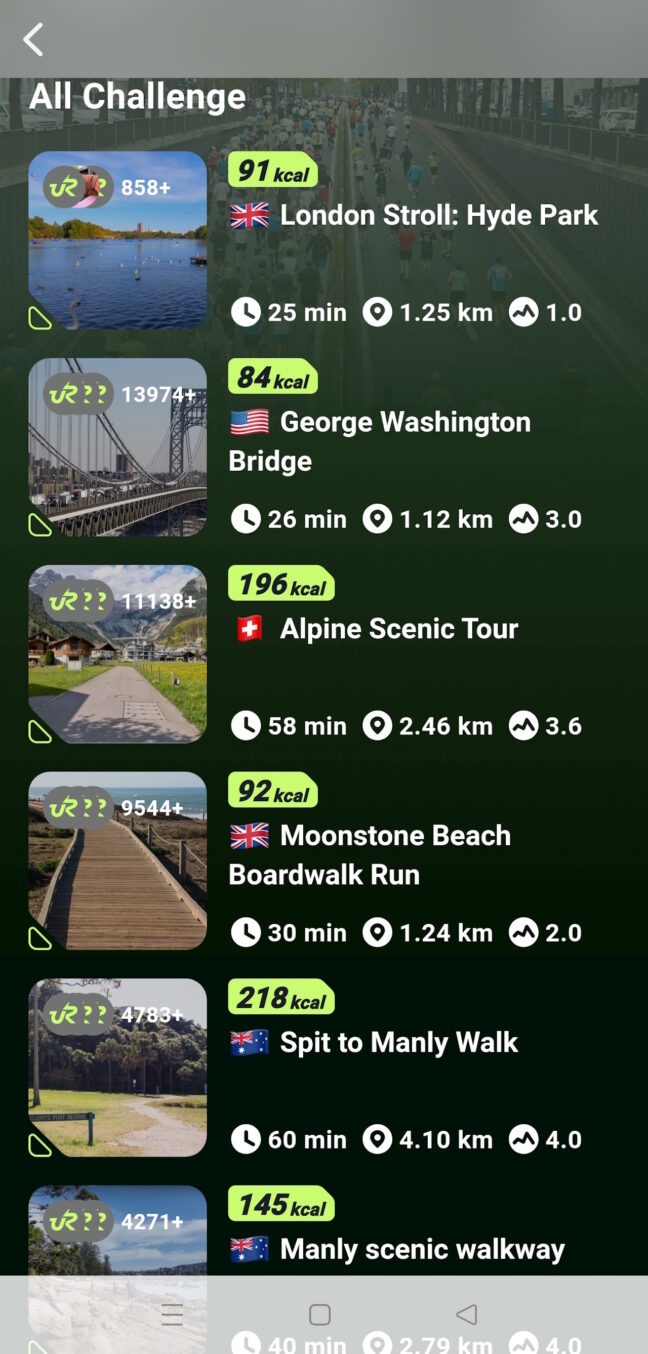 Sovelluksella nopeuden voi säätää 0,1 km/h tarkkuudella, ja se kerää kattavasti tilastoja kaikista kävelyhetkistä. Mukana on myös erilaisia harjoitusohjelmia, kuten kalorien polttoon tai meditaatiokävelyyn keskittyviä tiloja. Lisäksi tarjolla on niin sanottuja realistisia haasteita, joissa kuljetaan virtuaalisesti esimerkiksi George Washington Bridgen yli tai Lake Comon maisemissa. Näissä tiloissa ruudulla pyörii kyseisissä paikoissa kuvattu video, mikä tuo kävelyyn oman lisämausteensa.