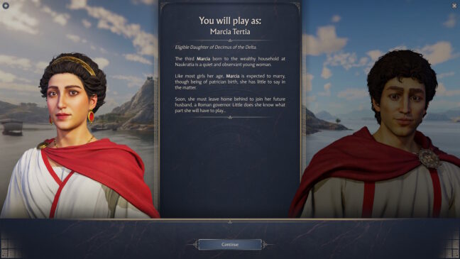 Kampanja alkaa valitsemalla kahden roomalaisen sisaruksen, itseään epäilevän Marcuksen tai rooliaan etsivän Marcian, väliltä. Valittu hahmo lähetetään syystä tai toisesta Latiumin alueelle, missä hän saa tehtäväkseen ottaa haltuun rappeutuneen saaren pienen kylän kuvernöörin viran.