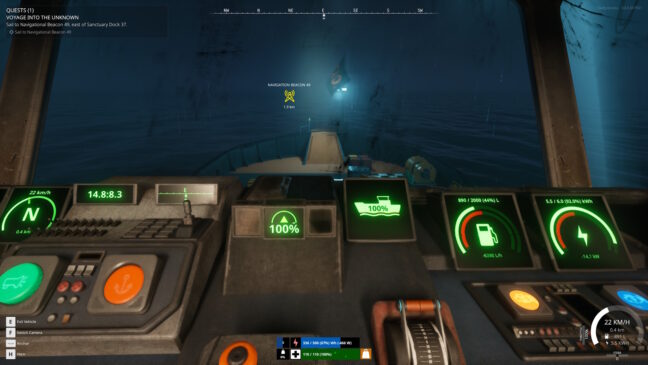 Vaikuttaisi siltä, että The Last Caretakerin maailmassa ilmastonmuutos on iskenyt kovaa, sillä lähialue on pelkkää merta. Juuri lunastettu luksuslaiva onkin ainoa tapa kulkea pienten öljylauttojen ja keinotekoisten saarten välillä. Merenkäynti on ehkä lempiasiani, sillä siinä on löydetty tasapaino realismin ja turhautumisen välttämisen välillä.