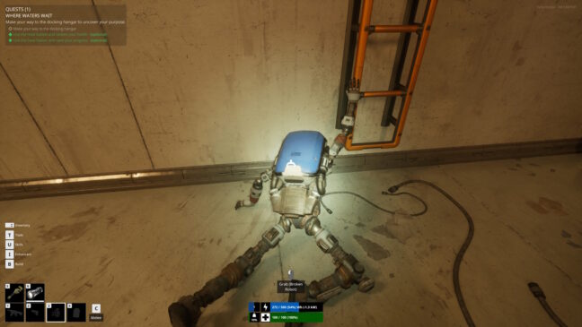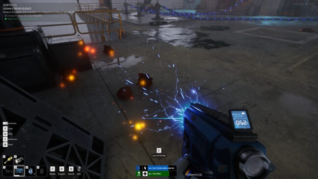 Kuten monessa selviytymispelissä, The Last Caretakerissa on rakentamismekaniikoita. Itselleen voi nikkaroida kaikkea liekinheittimistä vesiskoottereihin keräilemällä irtonaisia resursseja tai rikkomalla esineitä palasiksi. Tämän tapaiset mekaniikat eivät usein ole minun makuuni, sillä vaadittujen resurssien määrä on niin suuri, että liian iso pala kokonaisuudesta on puiden hakkaamista tai kivien kaivelua. The Last Caretakerissa kuitenkin tuntuu, että kuminpalat ja nauhat riittävät yllättävän pitkälle. Pelissä on myös monta laivan perässä olevaa troolin kaltaista erilaista tapaa kerätä resursseja passiivisesti.